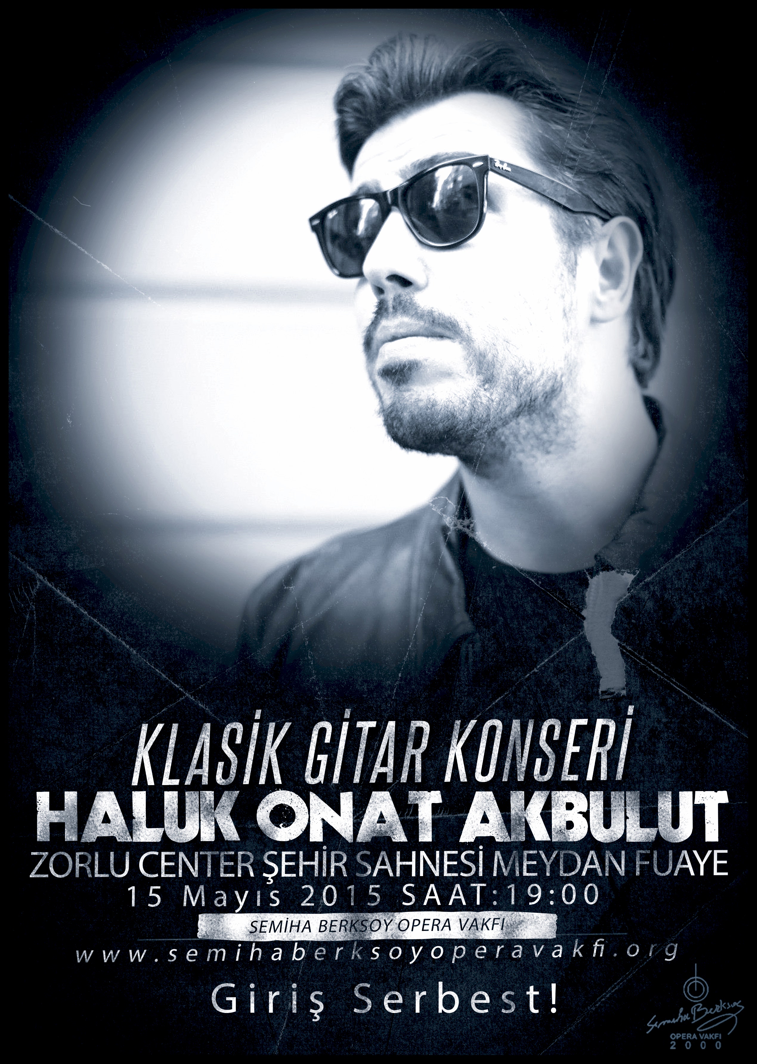 Semiha Berksoy Opera Vakfı bir klasik gitar konseri ile ‘Bahara Merhaba’ diyor. Haluk Onat Akbulut 15 Mayıs 2015 Cuma günü saat 19:00’da Zorlu Center Şehir Sahnesi Meydan Fuaye’de klasik gitar konseri verecek. Bilkent Üniversitesi’nde başladığı gitar eğitimini Almanya’da sürdürdükten sonra çalışmalarına devam eden Haluk Onat Akbulut, 1998 yılında Cumhurbaşkanlığı Senfoni Orkestrası’nın açtığı ‘Genç Yetenekler Yarışması’nda gitar dalında birinci oldu. Sanatçı, Dale Khavanagh , Thomas Müller Pering, Hubert Kappel, Alfonso Moreno, Tilman Hoppstock, Jorge Caballero, Anielo Desidero, Tadashi Sasaki, Manuel Baruecco, Pepe Romero ,Alirio Diaz ve David Russell ile workshop çalışmalarına katıldı, Türkiye’de ve Almanya’da konserler verdi.